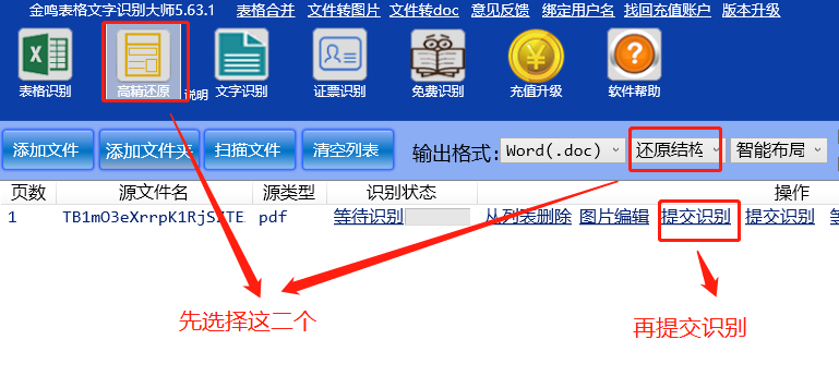 对于文本类的pdf,我们只需直接转换格式就可以了,这样转换出来的效果最好,几乎跟原来的pdf样式一样,排版也不会变。操作方法:点击金鸣表格文字识别顶部导航的“文件转doc”,在打开的对话框中选择需要转换的pdf文件,然后点击确定就可以了,非常简单。