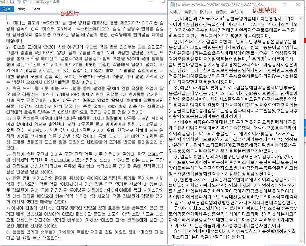 如何将上图为韩语的图片转为文本文件?这个需要用到OCR程序,操作方法如下: